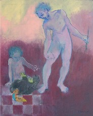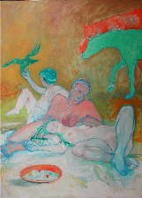 I work principally with oil paints, though I use a wide range of materials, including acrylic, encaustic and various print techniques. My work primarily involves the figure and often contains narrative elements, though that has not always been the case. I have come to believe as Ludwig Wittgenstein has said: "the human being is the best picture of the human soul." I approach the canvas without preliminary sketches, but with paint and an intuitive ordering of what the world has dished up. I make a mark as honestly and forcefully as I can and struggle from there until a new ordering is born and the work comes right. I look for opportunities to gamble in hope of discovering a memory, a sound, a sensation, a truth. For me, painting is an act of faith.